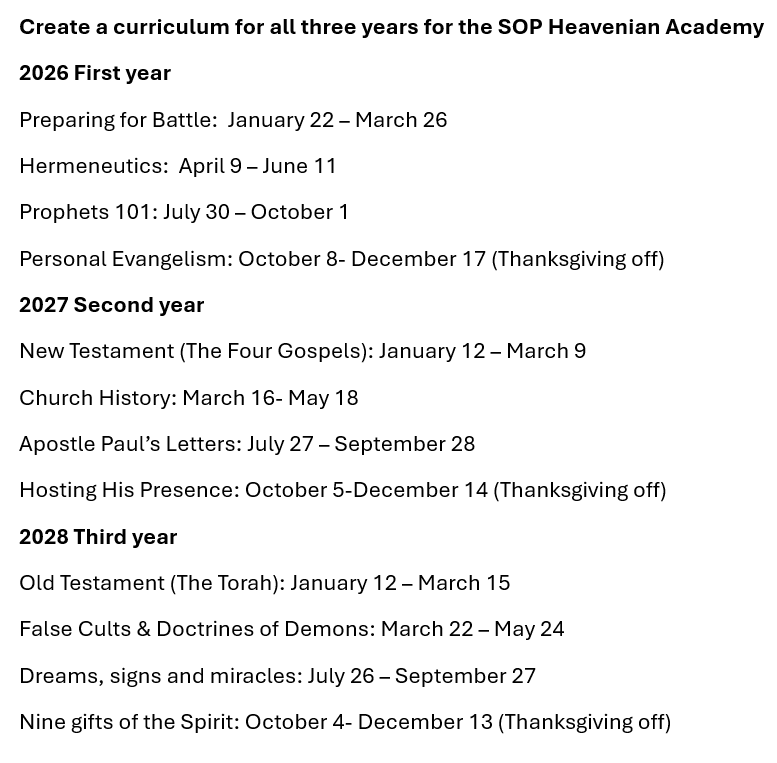 In 2007, the Lord showed me that one day I would have a school of prophets to be able to mentor and train in a small group setting. There is a fine line between a prophet and a witch so the Lord has given me permission to establish Heavenian Academy or The School of Prophets He wanted me to create.